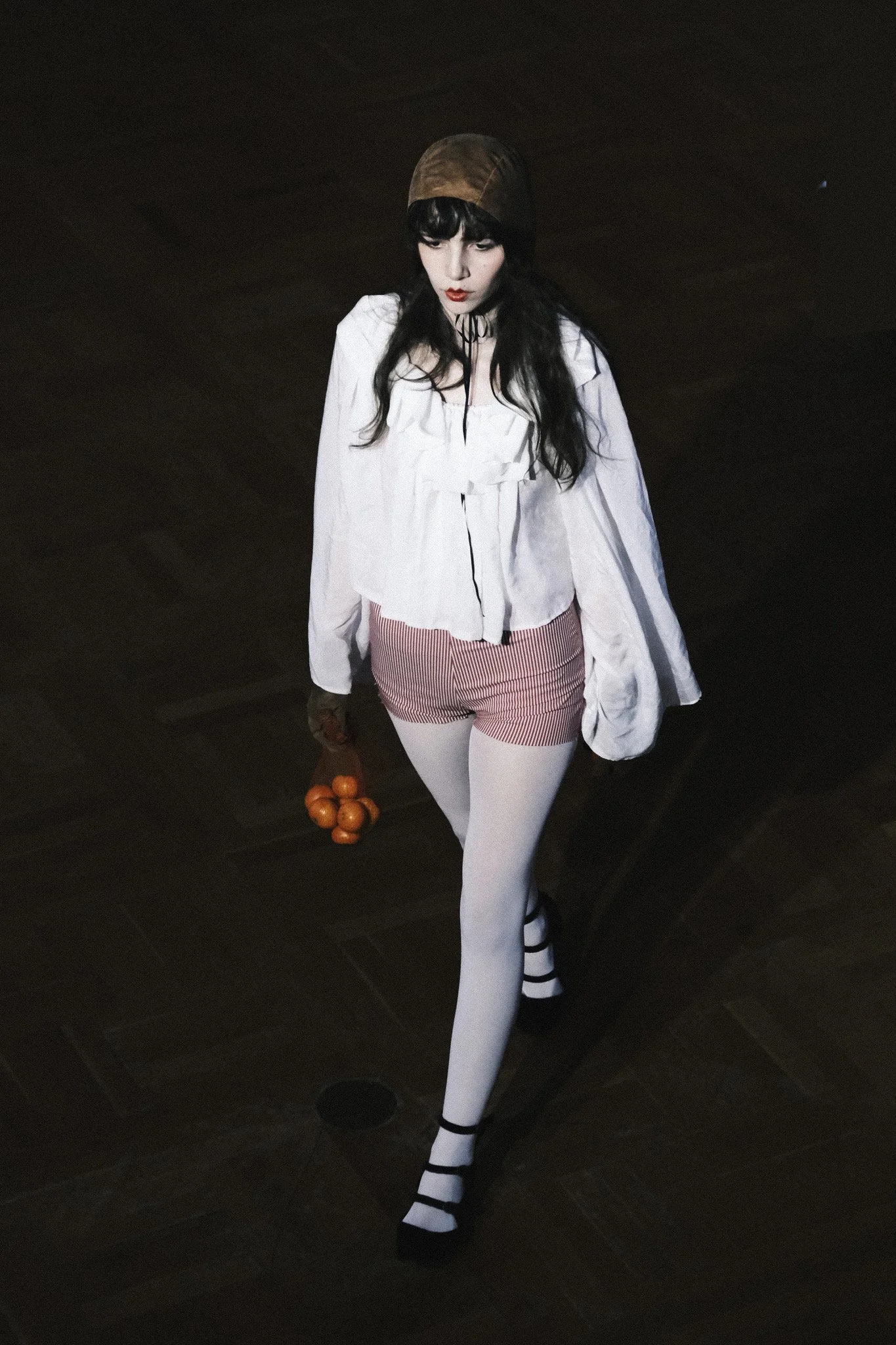 The Pierrot. The pining, yearning, heartbroken buffoon. Oranges are handed out as metaphor for the body: peeling skin back to break apart flesh and give away in little pieces. Oranges are meant to be shared. The body of The Pierrot is not her own. She is giving herself away, time and time again. She does not learn her lesson.